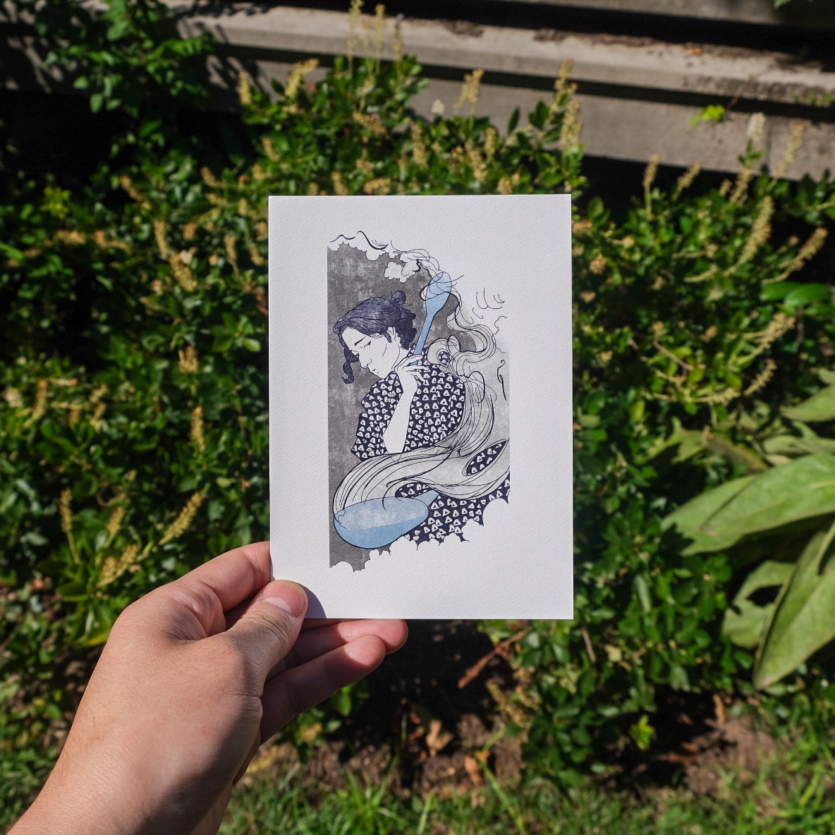 This print is made from my original artwork Man Cooking, created for the Noguchi Museum's 2024 banner contest with the theme of “labor”. The work is inspired by Impressionism and Japanese Ukiyo-e (Woodblock Print).